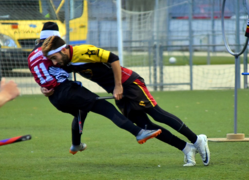 Finalmente tendremos la snitch, y os estaréis preguntando: ¿Pero como hacen? Pues si conoceis el futbol flag o quitarle la corra al burro, os podéis hacer una idea, y si no no pasa nada, porque ahora lo sabréis: una persona neutral. denominada snitch runner, lleva colgada en su baja espalda una media con una pelota del tamaño de una tenis que hay que atrapar, y, una vez realizado, el partido termina (salvo en caso de empate, que se va a prorroga). Parece sencilla atraparla, si no fuera porque el snitch runner puede defenderse de los buscadores quitandole los sticks, golpeándoles, arrastrarles por el suelo… un gran espectáculo.